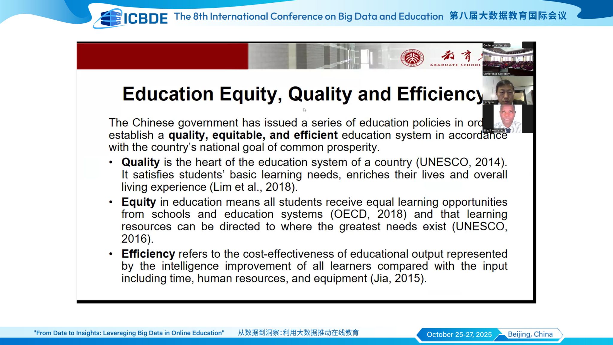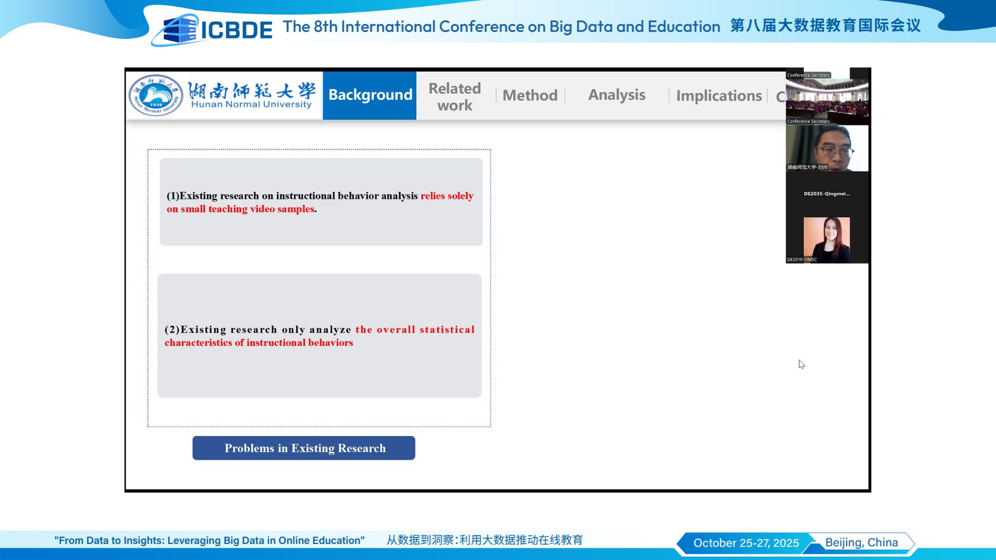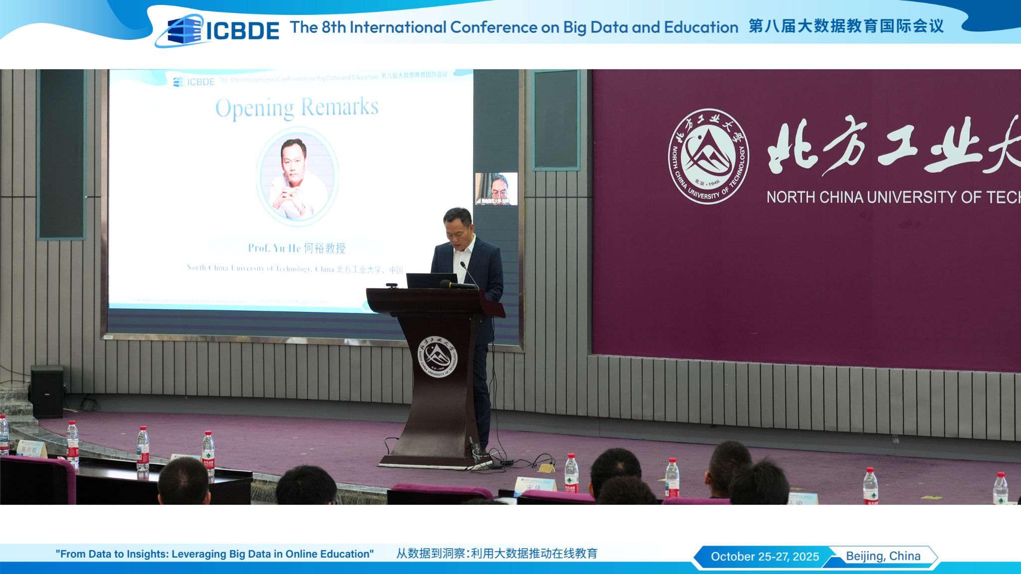 The 8th International Conference on Big Data and Education (ICBDE 2025) was held at Beijing, China during October 25-27, 2025. The opening ceremony was gave by Prof. Yu He, North China University of Technology, China and welcome remarks was by Prof. Xiangqun Chen, Peking University, China.The conference host is Prof. Wei Song, North China University of Technology, China